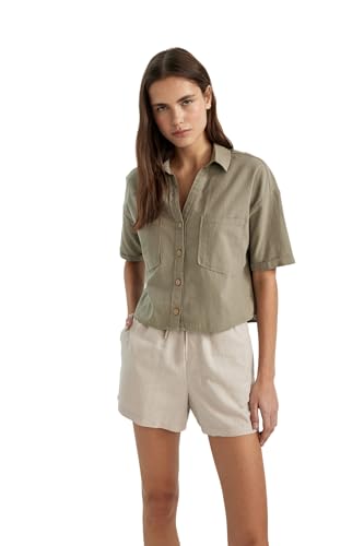 DeFacto - قميص واسع بياقة وأكمام قصيرة للنساء من ديفاكتو، موديل V2523AZ