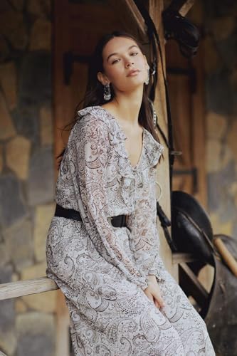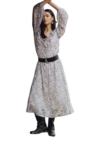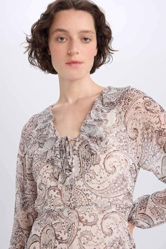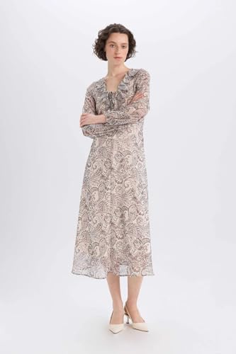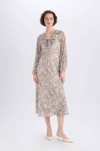 DeFacto - ديفاكتو فستان كاجوال بقصة واسعة وقبة C واكمام طويلة وتنورة منسوجة باكمام طويلة للنساء، لون بيج مقاس 40
