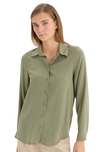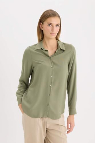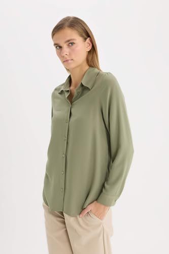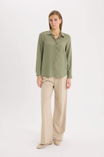 DeFacto - ديفاكتو قميص كاجوال منسوج باكمام طويلة وقصة عادية ورقبة قميص للنساء، لون كاكي، مقاس XL