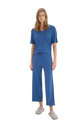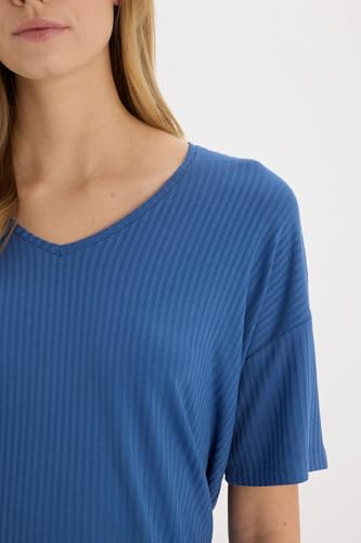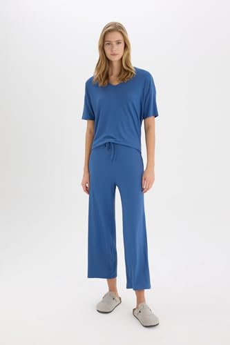 DeFacto - ديفاكتو طقم ملابس منزلية كاجوال للنساء بقصة عادية ورقبة شكل V واكمام قصيرة، لون ازرق نيلي، مقاس XL