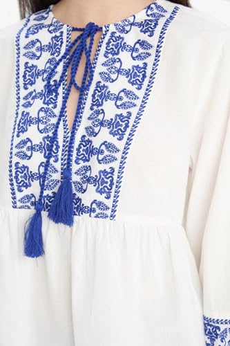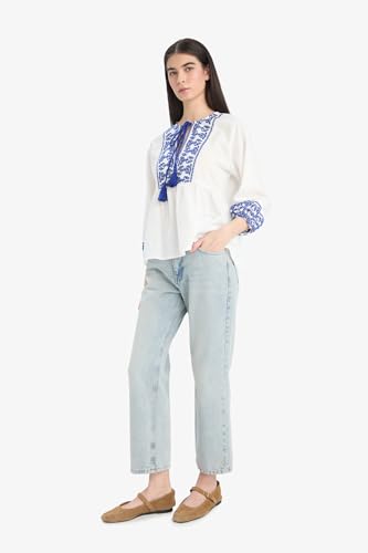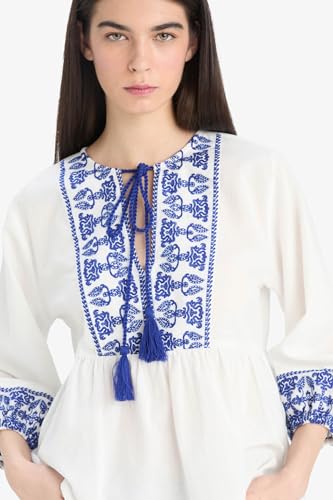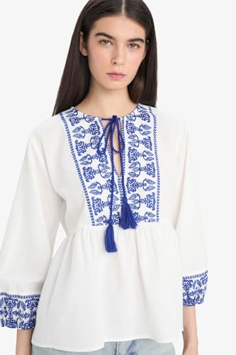 DeFacto - ديفاكتو بلوزة كاجوال منسوجة بقصة عادية ورقبة دائرية ضيقة واكمام طويلة 3/4 للنساء E6527AX