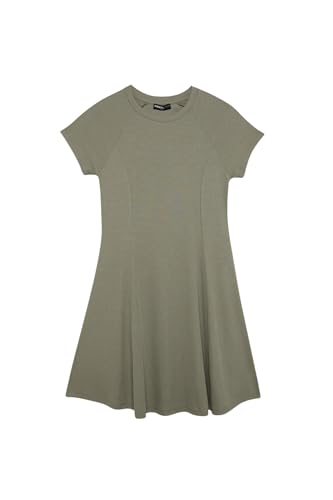 DeFacto - ديفاكتو فستان بقصة واسعة وقبة C واكمام قصيرة وتنورة محبوكة باكمام قصيرة للنساء، لون اخضر، مقاس XL
