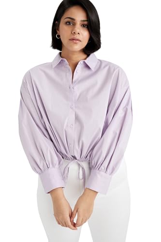 DeFacto - ديفاكتو قميص قصير منسوج باكمام طويلة ورقبة قميص للنساء، لون رملي، مقاس XS