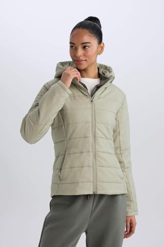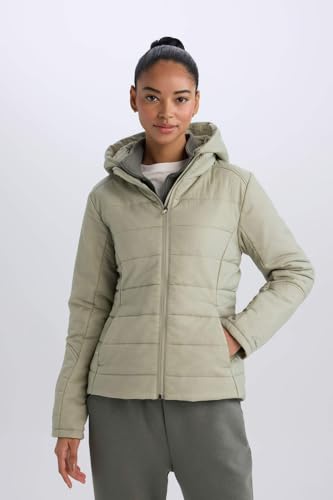 DeFacto - ديفاكتو ملابس خارجية بغطاء للرأس وقصة عادية للنساء، لون كاكي فاتح، مقاس S