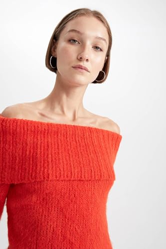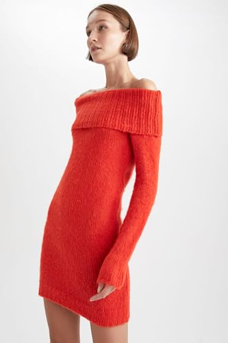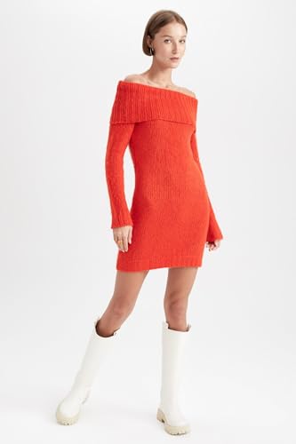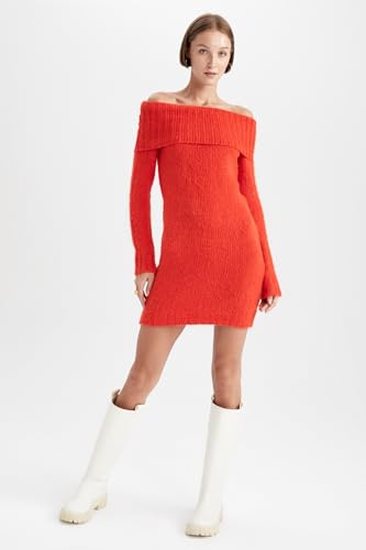 DeFacto - فستان تريكو برقبة باردو للنساء من ديفاكتو، Z1201AZ