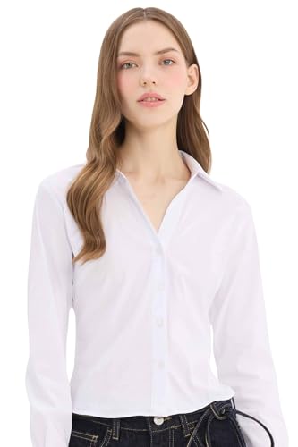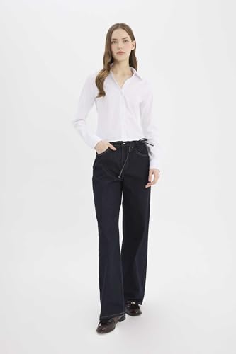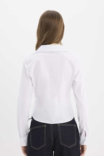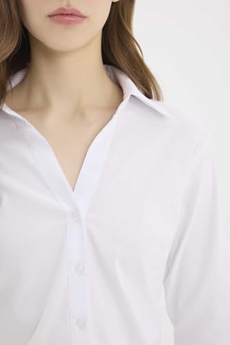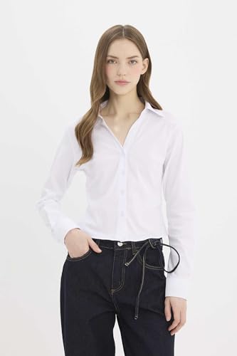 DeFacto - ديفاكتو قميص باكمام طويلة ورقبة قميص للنساء من نسيج محبوك Y3128AZ، ابيض، مقاس S