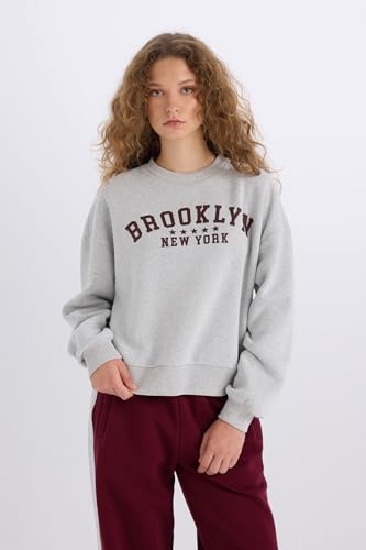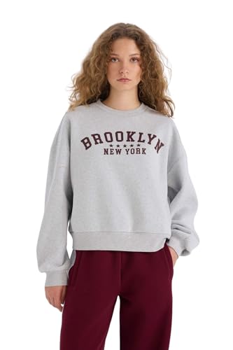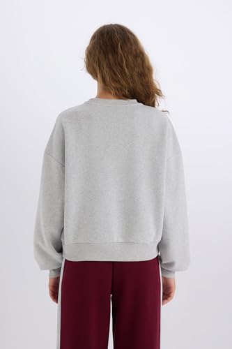 DeFacto - سويت شيرت منسوج بقصة فضفاضة ورقبة دائرية ضيقة وأكمام طويلة للنساء من ديفاكتو، رمادي، اكس سمول E3387AX