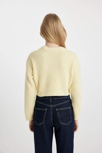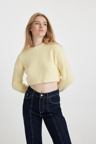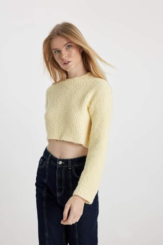 DeFacto - ديفاكتو بلوفر تريكو بقصة عادية ورقبة دائرية ضيقة واكمام طويلة للنساء B3560AX، اصفر، مقاس L