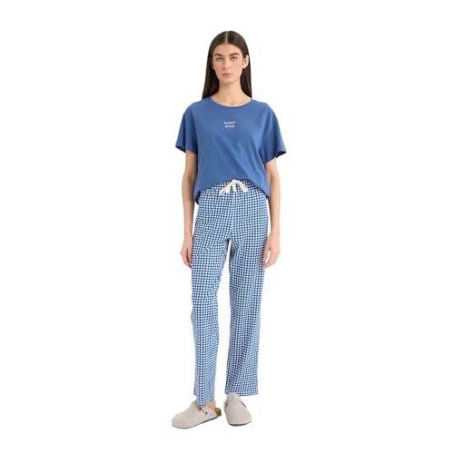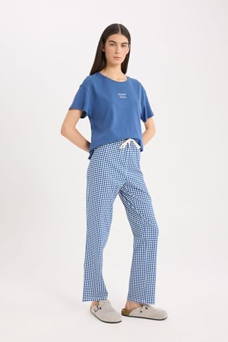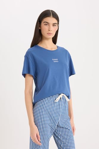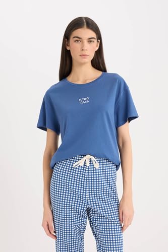 DeFacto - ديفاكتو طقم ملابس منزلية كاجوال للنساء بقصة عادية ورقبة دائرية ضيقة واكمام قصيرة E0270AX، لون ازرق نيلي، مقاس XL