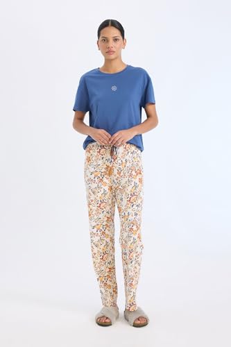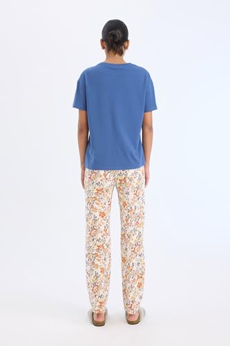 DeFacto - ديفاكتو طقم ملابس منزلية كاجوال للنساء بقصة عادية ورقبة دائرية ضيقة واكمام قصيرة E0272AX، لون ازرق نيلي، مقاس XXL