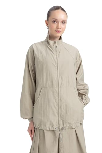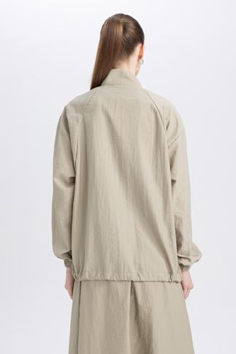 DeFacto - ديفاكتو بلوزة طويلة منسوجة باكمام طويلة وقصة عادية ورقبة مرتفعة للنساء، لون كاكي فاتح، مقاس S
