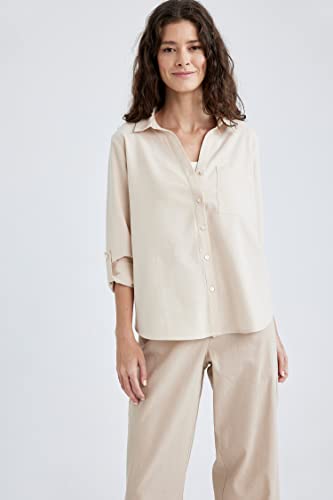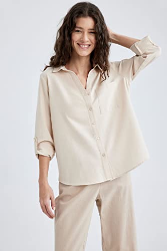 DeFacto - قميص طويل بقصة عادية وياقة قميص وأكمام طويلة للنساء من ديفاكتو V2522AZ