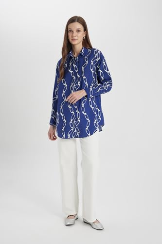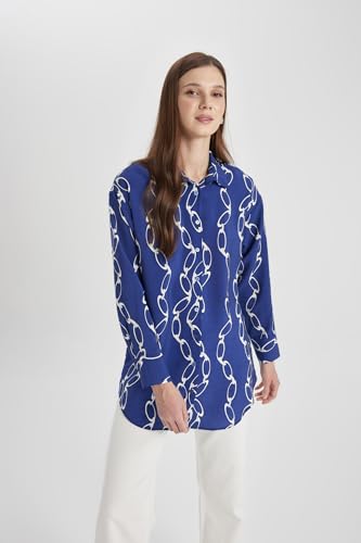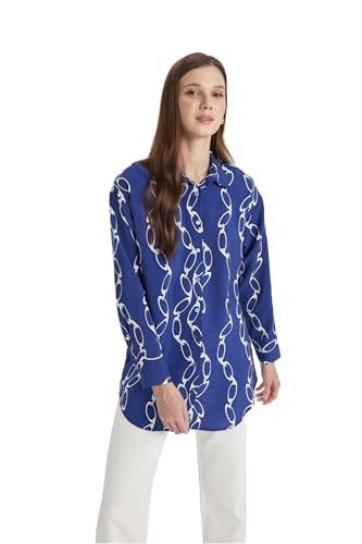 DeFacto - بلوزة طويلة كلاسيكية منسوجة بقصة مريحة وياقة قميص وأكمام طويلة للنساء من ديفاكتو، A5308AX
