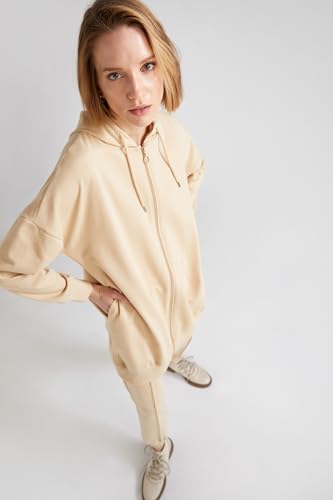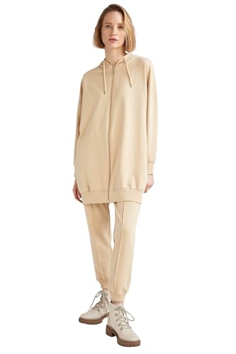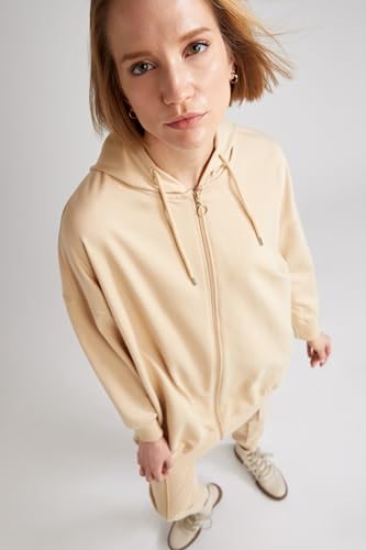 DeFacto - ديفاكتو كارديجان محبوك بغطاء للرأس وقصة مريحة للنساء، لون بيج، مقاس XS