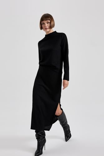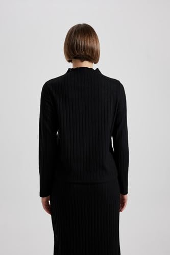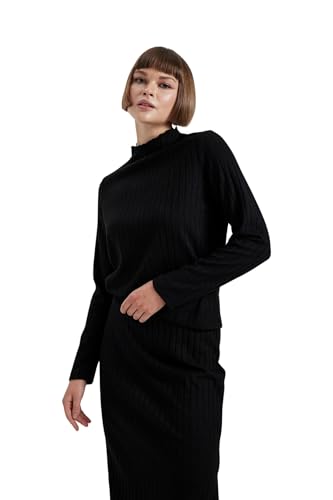 DeFacto - تيشرت منسوج بنمط كلاسيكي بقصة ضيقة سليم فت ورقبة مرتفعة وأكمام طويلة للنساء من ديفاكتو، موديل B4778AX
