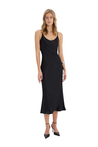 DeFacto - ديفاكتو فستان انيق كاجوال بدون اكمام وتنورة منسوج باكمام قصيرة للنساء، لون اسود مقاس 42