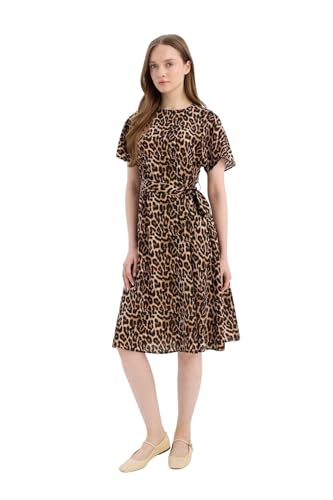 DeFacto - ديفاكتو فستان نسائي تقليدي بقصة عادية ورقبة دائرية واكمام قصيرة وتنورة منسوجة باكمام قصيرة، بيج 40