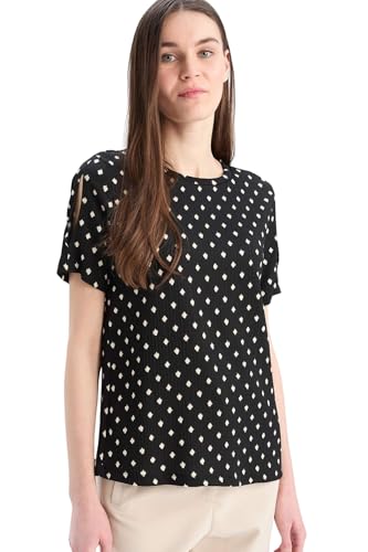 DeFacto - ديفاكتو تي شيرت نسائي تقليدي بقصة عادية ورقبة دائرية واكمام قصيرة محبوك واكمام قصيرة، لون اسود، مقاس XXL