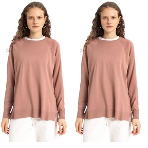 DeFacto - ديفاكتو بلوفر تريكو للنساء B7866AX لون روز مقاس XXL (عبوة من قطعتين)