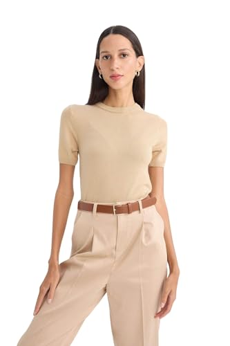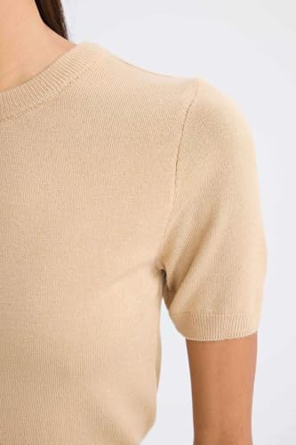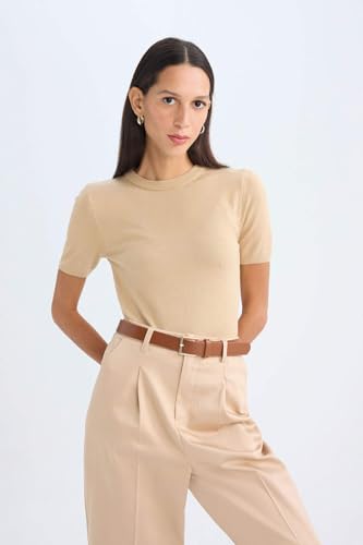 DeFacto - بلوفر تريكو طراز A4737AX بقصة ضيقة ورقبة دائرية وكم قصير للنساء من ديفاكتو