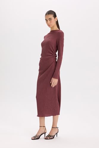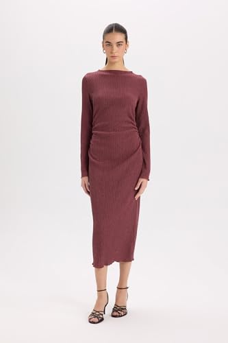 DeFacto - فستان عصري منسوج، فستان ضيق بقصة جيبة مزين بأكمام طويلة ونصف ياقة مرتفعة ضيقة وجيبة بقصة ضيقة، موديل D8643AX للنساء من ديفاكتو
