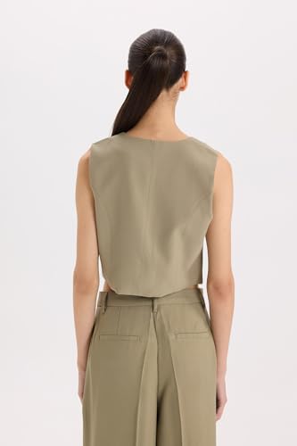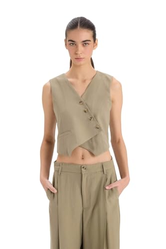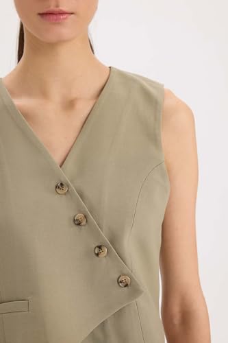 DeFacto - سترة وجاكيت بليزر كاجوال ذكية بدون أكمام برقبة V غير متماثلة للنساء من ديفاكتو، موديل D4568AX