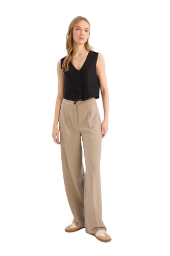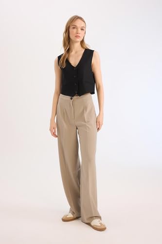 DeFacto - ديفاكتو بنطلون منسوج بقصة مستقيمة للنساء الشباب، لون بيج، مقاس 34