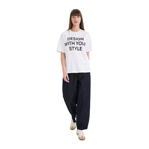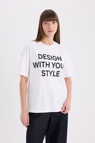 DeFacto - DeFacto Womens Casual Oversize Fit Crew Neck Short Sleeve Knitted Short Sleeve T-Shirt Short (pack of 1)