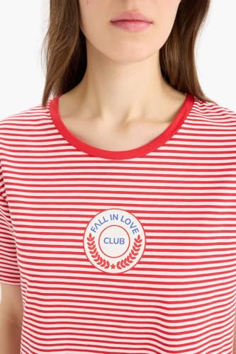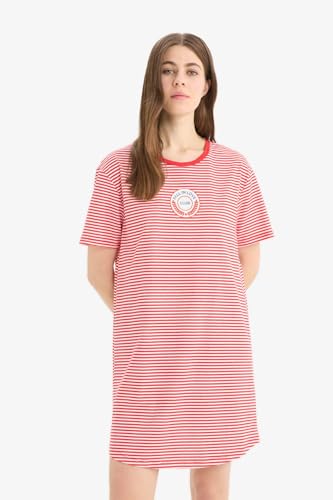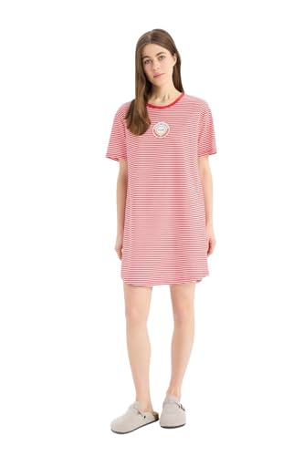 DeFacto - ديفاكتو فستان كاجوال محبوك بقصة عادية ورقبة دائرية ضيقة واكمام قصيرة للنساء (عبوة من قطعة واحدة)