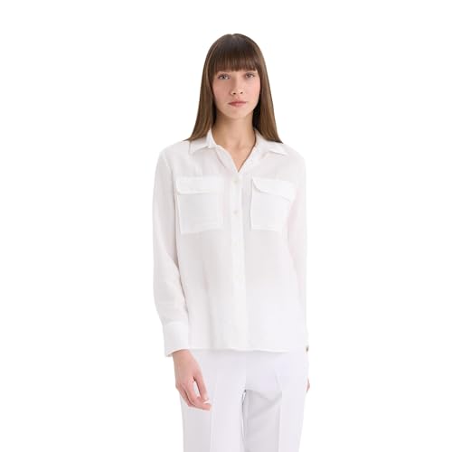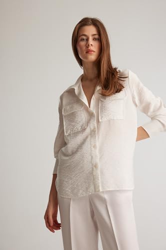DeFacto - ديفاكتو قميص نسائي كاجوال بقصة عادية ورقبة قميص واكمام طويلة منسوج باكمام طويلة