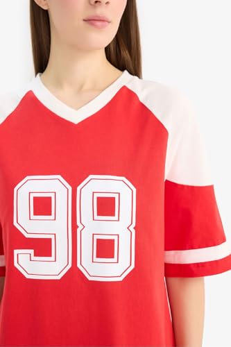 DeFacto - ديفاكتو فستان نوم باكمام قصيرة ورقبة شكل V مطبوع بعبارة Fall in Love