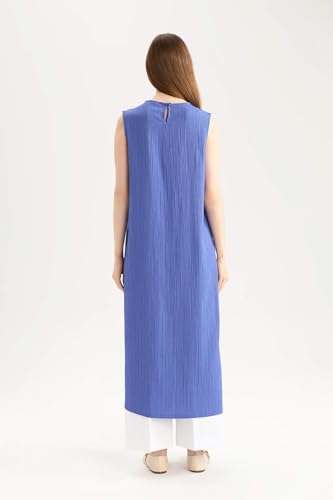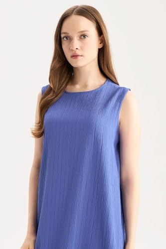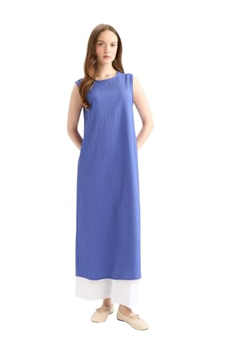 DeFacto - فستان من نسيج محبوك برقبة عنق مستديرة بنمط عباءة للنساء من ديفاكتو (عبوة من قطعة واحدة)