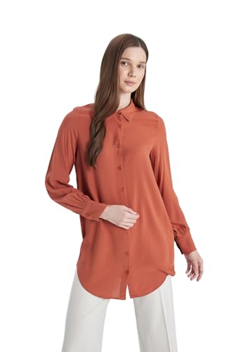 DeFacto - بلوزة طويلة سي ان اس من نسيج محبوك بأكمام طويلة بقصة واسعة مع ياقة قميص للنساء من ديفاكتو، 1 قطعة