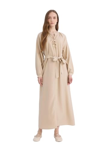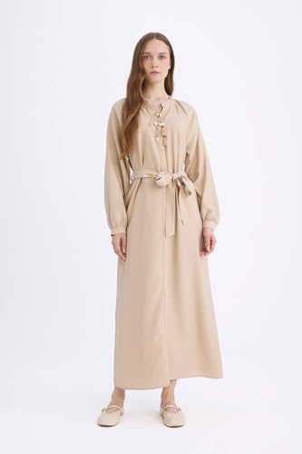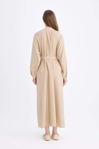 DeFacto - فستان للنساء بقصة مريحة ورقبة مائلة وأكمام طويلة مصنوع من قماش منسوج من ديفاكتو(عبوة من 1 قطعة)