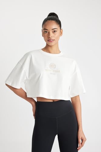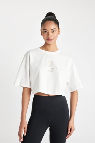 DeFacto - تيشيرت وكاش مايوه منسوج بكم قصير ورقبة دائرية ضيقة للنساء موديل C0008AX من ديفاكتو