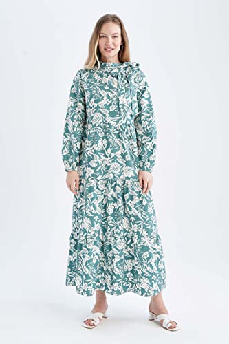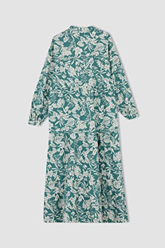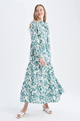 DeFacto - فستان مطبوع بقصة فضفاضة كم طويل ونصف ياقة مرتفعة ضيقة للنساء من ديفاكتو