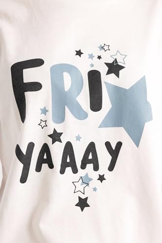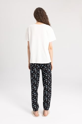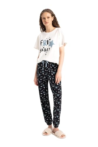 DeFacto - طقم بيجامة منسوجة بقصة عادية ورقبة دائرية ضيقة وأكمام قصيرة للنساء B6176AX من ديفاكتو