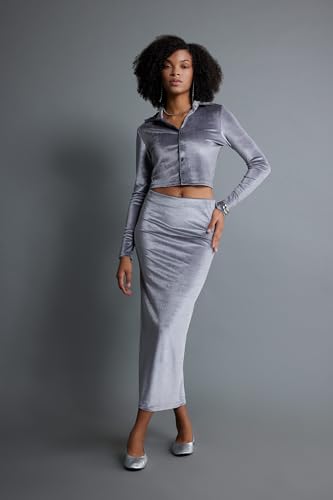 DeFacto - جيبة ضيقة طويلة قطيفة للنساء من ديفاكتو