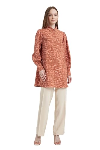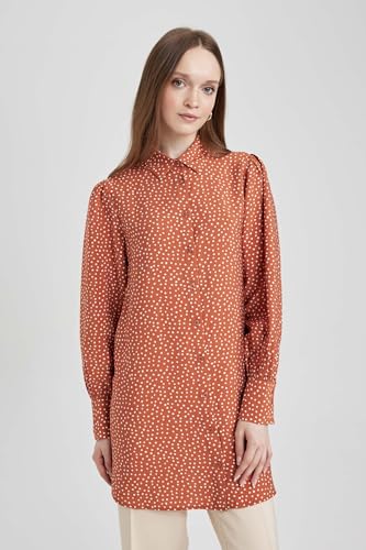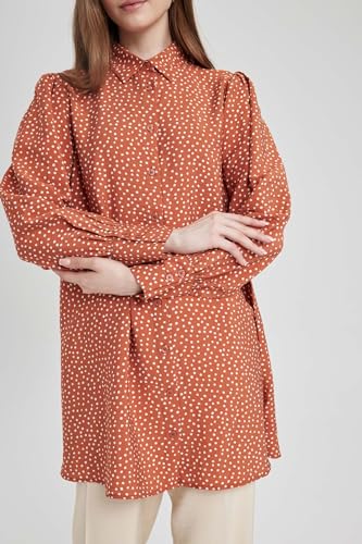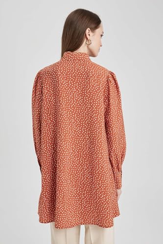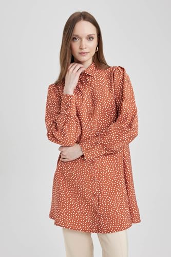 DeFacto - قميص نسائي بقصة عادية 100% فسكوز برقبة منقطة غربية من ديفاكتو