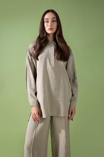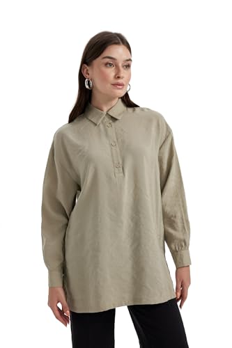 DeFacto - بلوزة طويلة تونيك بأكمام طويلة وقصة عادية للنساء من ديفاكتو، موديل A9762AX