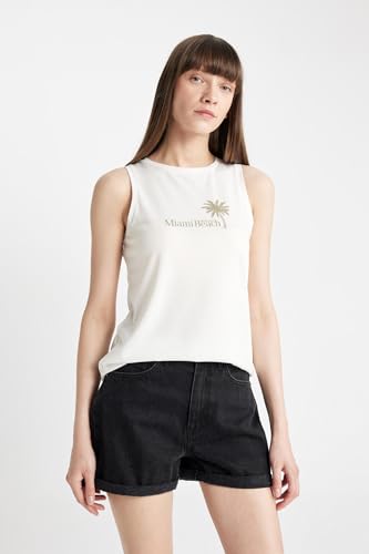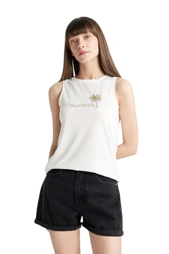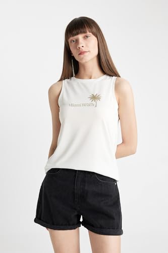 DeFacto - تيشيرت رياضي محبوك بقصة عادية ورقبة دائرية ضيقة للنساء من ديفاكتو، D3604AX