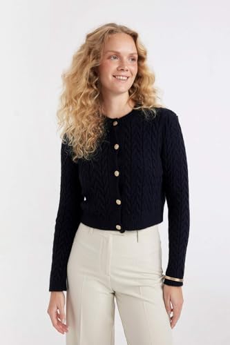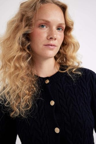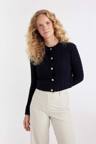 DeFacto - DeFacto womens Regular Fit Crew Neck Long Sleeve Tricot C9044AX Cardigan Sweater (pack of 1)
