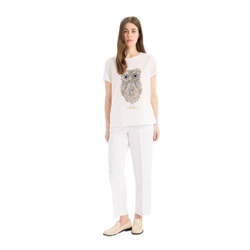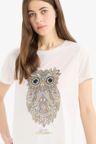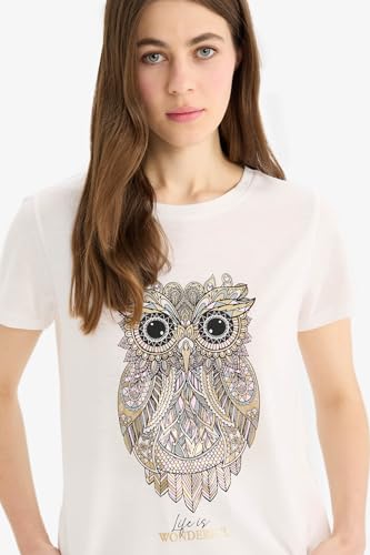 DeFacto - تيشرت كاجوال منسوج بأكمام قصيرة وقصة عادية ورقبة دائرية ضيقة طراز E9566AX للنساء من ديفاكتو