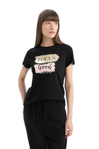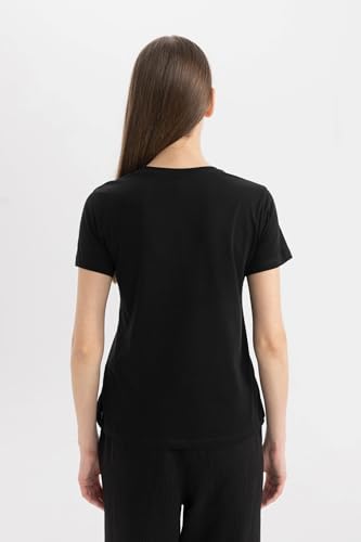 DeFacto - ديفاكتو تي شيرت منسوج باكمام قصيرة ورقبة دائرية ضيقة وقصة عادية للنساء D1926AX