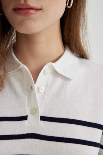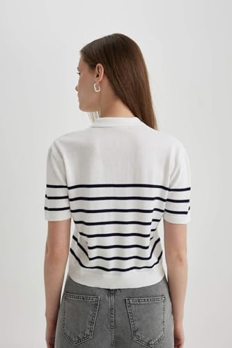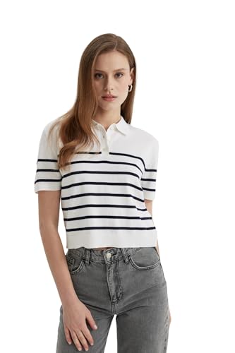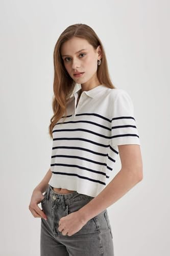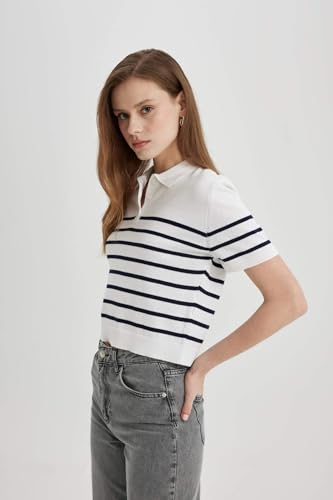 DeFacto - بلوفر تريكو بقصة عادية ورقبة بولو وأكمام قصيرة للنساء من ديفاكتو، موديل C4402AX