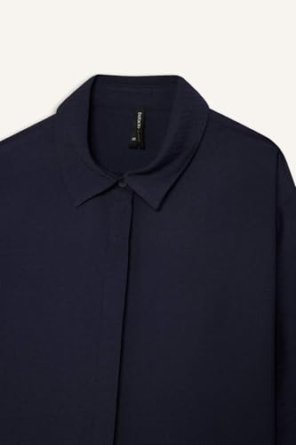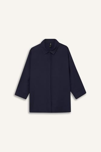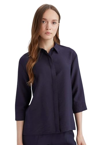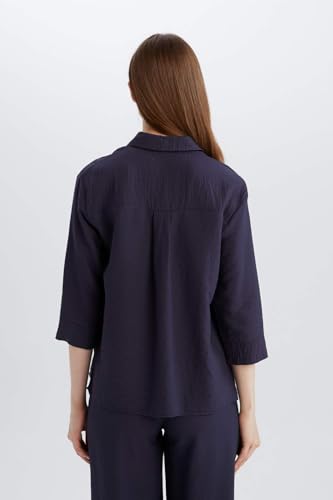 DeFacto - قميص E4987AX بقصة عادية وياقة قميص وأكمام ثلاثة أرباع بنسيج محبوك بتصميم تقليدي طويل للنساء من ديفاكتو