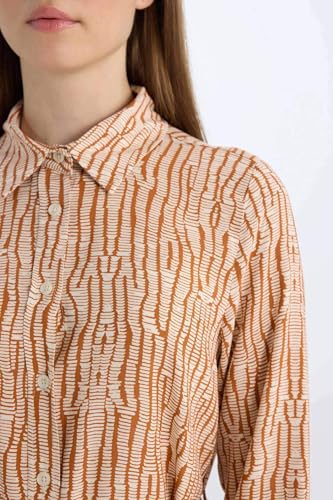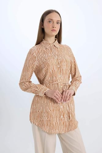 DeFacto - بلوزة طويلة E1758AX بأكمام طويلة وقبة قميص وقصة عادية من نسيج محبوك للنساء من ديفاكتو