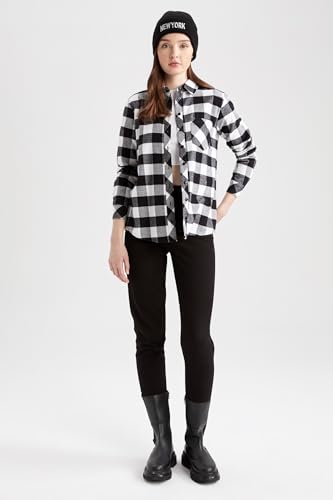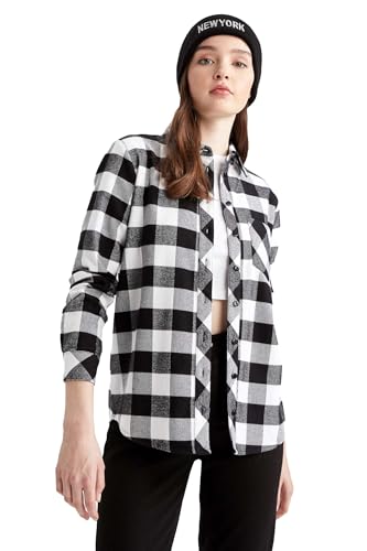 DeFacto - قميص طويل بقصة عادية وياقة وأكمام طويلة للنساء من ديفاكتو X6263AZ