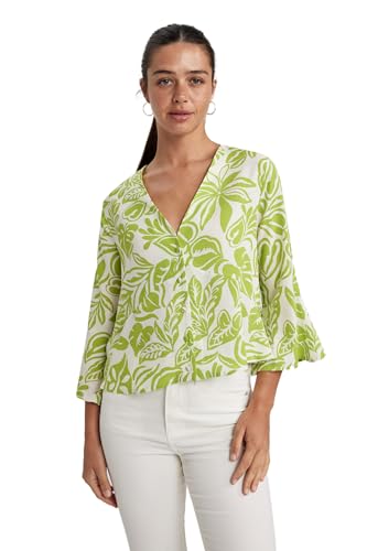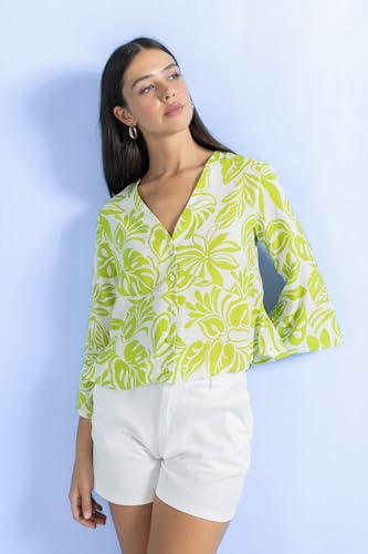 DeFacto - بلوزة للنساء بأكمام 3/4 وقصة عادية وفتحة رقبة على شكل حرف V موديل A9950AX من ديفاكتو