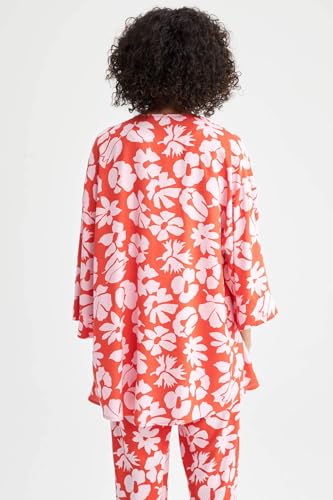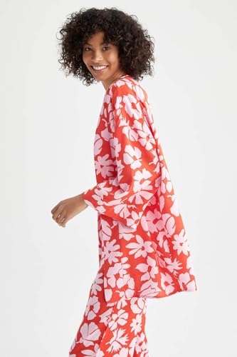 DeFacto - بلوزة طويلة تونيك بأكمام طويلة وقبة على شكل حرف V وقصة عادية للنساء من ديفاكتو، موديل Y7401AZ